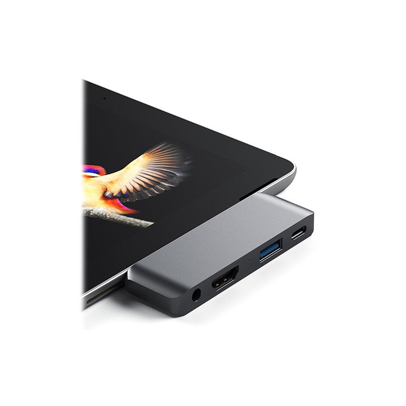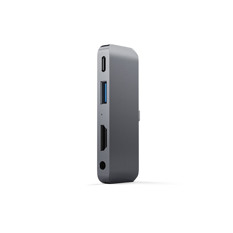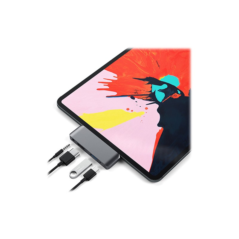 Libérez tout le potentiel de votre nouvel iPad Pro 2018 avec le Satechi Mobile Pro Hub. Conçu spécifiquement pour l'iPad Pro 2018 pour accéder facilement aux périphériques, où que vous soyez. Doté d'un port pour écran HDMI 4K 30Hz (limitation 2K 60Hz pour iPad Pro), d'un port de chargement USB-C PD 3.0, USB 3.0 (jusqu'à 5 Gb / s) et de prise casque 3,5 mm, le tout via une seule connexion USB-C. Grâce à sa conception plug-and-play, il est plus facile que jamais de connecter tous vos appareils en déplacement.