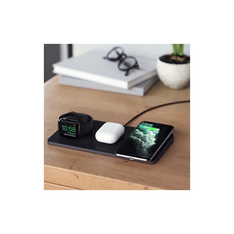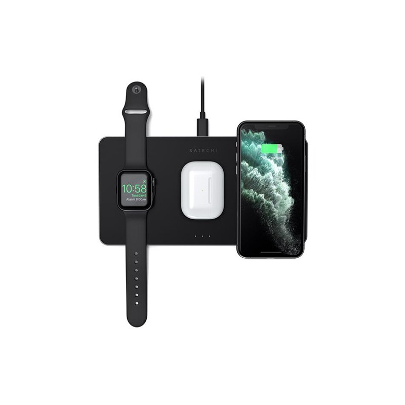 La station de charge sans fil Satechi Trio simplifie la charge sans fil avec un emplacement pratique pour tous vos appareils - vous ne serez donc jamais sans charge. Avec une technologie de recharge plus rapide et des fonctions de sécurité intelligentes, le chargeur permet d'alimenter rapidement un smartphone compatible Qi, Apple Watch et AirPods Pro en même temps.