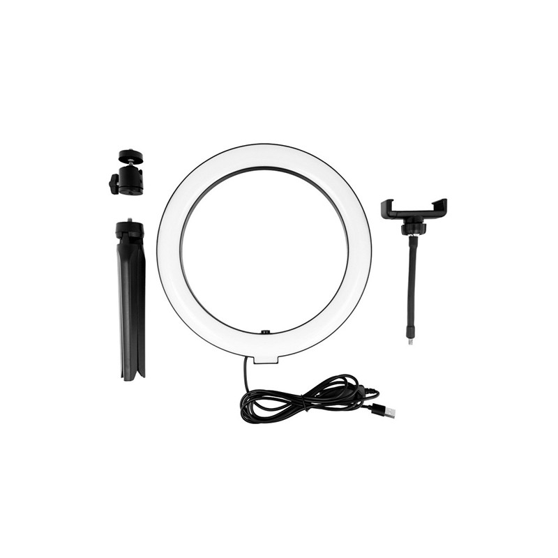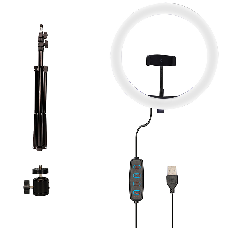 Un support téléphone intégré vous permet de placer votre smartphone au centre de la lampe pour mettre en valeur votre visage ou les produits présentés et le mini trépied permet une stabilité de la lampe lors de son utilisation.