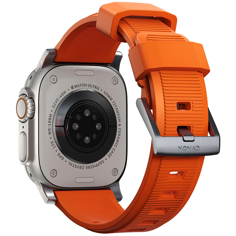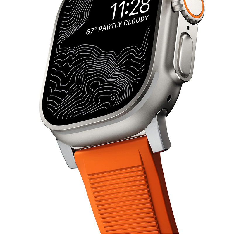 Conçu pour donner à votre Apple Watch un look moderne et robuste pour un usage quotidien ou pour votre prochaine aventure. Le bracelet robuste est fabriqué en FKM, un fluoroélastomère doux mais solide qui associe confort toute la journée et durabilité durable. Le matériel en acier inoxydable injecté sur mesure offre un ajustement sécurisé et un style unique.