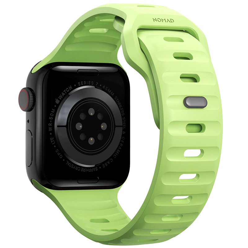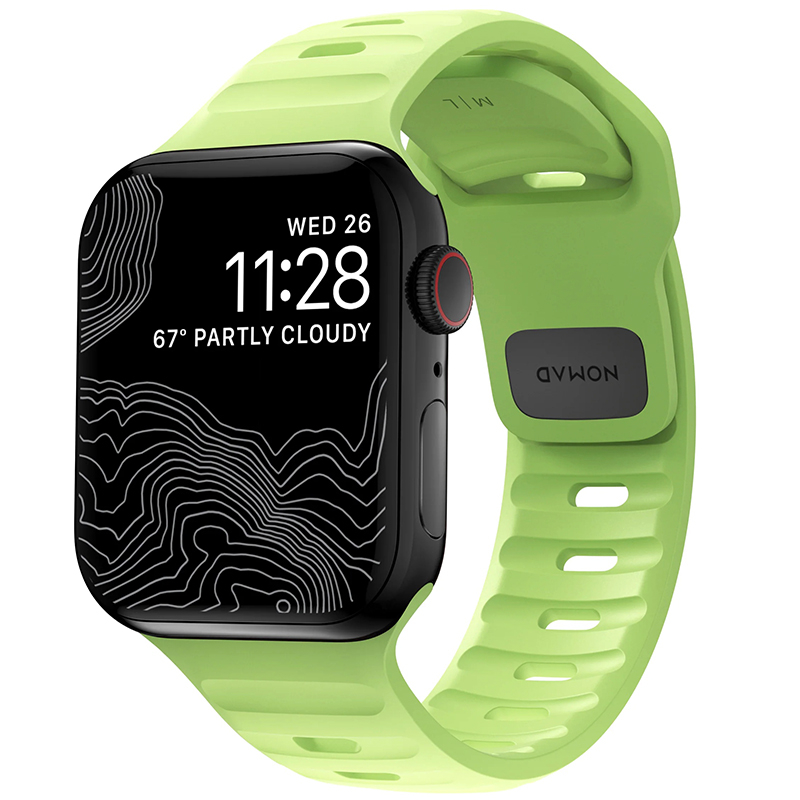 Sport Band donne à votre Apple Watch un look moderne et athlétique qui passe sans problème du bureau à l'arrière-pays. Son design léger et respirant assure un confort tout au long de la journée et son mécanisme de fermeture à épingles et à lacets garantit une fermeture sûre. À la lumière du jour, Glow 2.0 est d'un vert pâle classique. Le tout nouveau Glow 2.0 s'illumine jusqu'à 3 fois plus que son prédécesseur. Première du genre, cette bande passe d'un vert pâle classique à un vert fluo accrocheur lorsque les lumières sont éteintes.