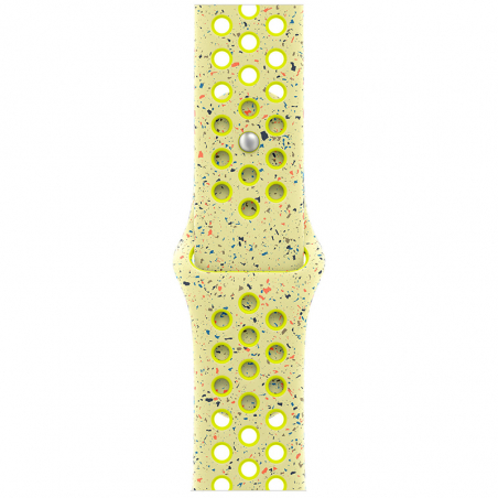 Doté de perforations moulées par compression pour une meilleure aération, le Bracelet Sport Nike est solide et résistant, mais aussi étonnamment doux. Il se pare de flocons colorés formant un motif aléatoire qui rend chaque bracelet totalement unique. Son matériau souple et dense épouse avec élégance la courbe de votre poignet et vous procure une grande sensation de confort. Un système de fermeture à clou et passant en aluminium, sur lequel est gravé le logo Run Swoosh, confère au clou une agréable finition mate.