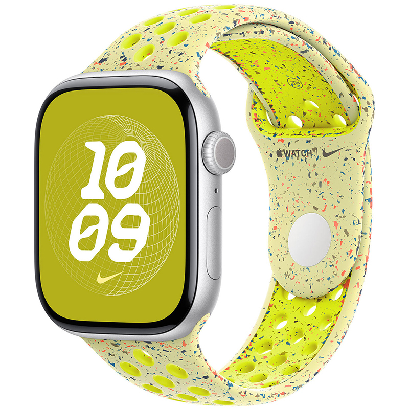 Doté de perforations moulées par compression pour une meilleure aération, le Bracelet Sport Nike est solide et résistant, mais aussi étonnamment doux. Il se pare de flocons colorés formant un motif aléatoire qui rend chaque bracelet totalement unique. Son matériau souple et dense épouse avec élégance la courbe de votre poignet et vous procure une grande sensation de confort. Un système de fermeture à clou et passant en aluminium, sur lequel est gravé le logo Run Swoosh, confère au clou une agréable finition mate.