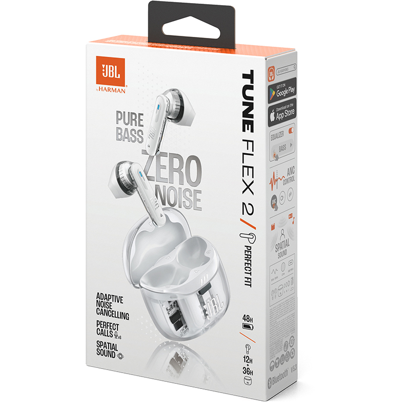 JBL Écouteurs avec réduction de bruit Tune Flex 2 - Ghost Edition Blanc