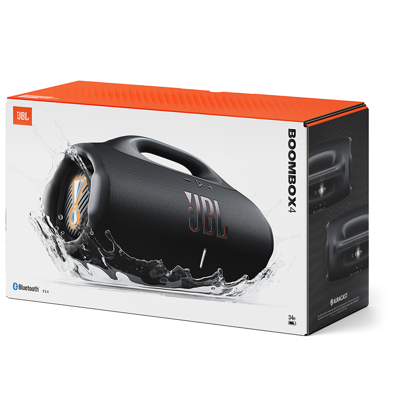 Augmentez le volume à votre guise, où que vous soyez. La toute nouvelle JBL Boombox 4 est plus grande, plus audacieuse et plus perfectionnée que jamais, avec le son JBL Pro puissant toujours clair et puissant, ainsi que des basses profondes. La fonction AI Sound Boost analyse votre musique en temps réel et ajuste le son pour vous donner plus de puissance avec moins de distorsion, même à fond. L’enceinte présente deux grands haut-parleurs de graves, deux tweeters et trois radiateurs passifs, de sorte que chaque morceau sonne de manière plus incisive, avec un son plus net. Pour ajuster le son selon l’ambiance, il suffit de passer du réglage Bass Boost intense à dynamique, ou vice-versa. Avec un design classique revisité, la Boombox est plus grande mais plus légère, afin de pouvoir l’emporter partout où la fête se déroule : à la plage, dans le quartier ou dans le jardin. Certifié IP68, elle est étanche et résiste à la poussière, de sorte que la météo n’est jamais un souci. Et, avec jusqu’à 34 heures d’autonomie (grâce à Playtime Boost), vous pourrez faire la fête jusqu’au bout de la nuit. Avec la JBL Boombox 4, transportez l’ambiance et l’énergie, où que vous alliez.