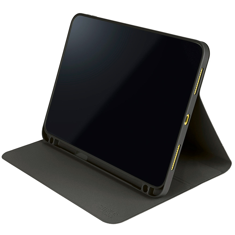 Folio pour iPad 11 et iPad 10 avec coque arrière semi-rigide et intérieur résistant aux rayures, convertible en un support confortable pour différentes positions. Espace à l'intérieur de l'étui pour ranger l'Apple Pencil. Trou pour l'appareil photo au dos et fonction marche-arrêt intégrée.