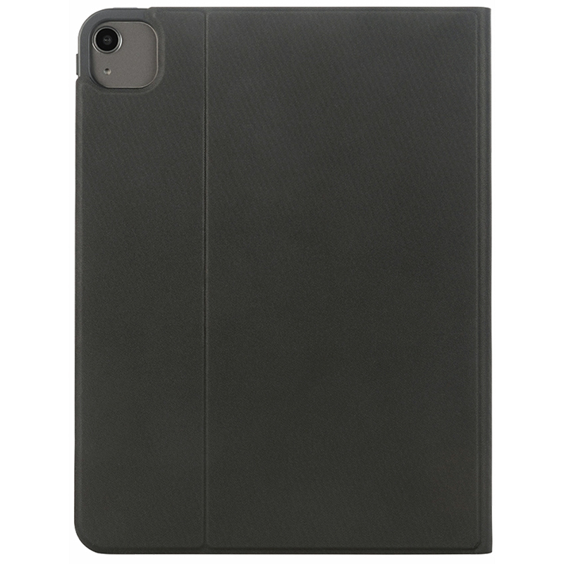 Étui pour iPad Air 11" M2/M3 en PU effet nylon avec coque arrière semi-rigide et intérieur anti-rayures, transformable en un support pratique pour différentes positions d'utilisation. Trou pour la caméra à l'arrière et compartiment pour le Tucano Pencil ou l'Apple Pencil à l'intérieur.