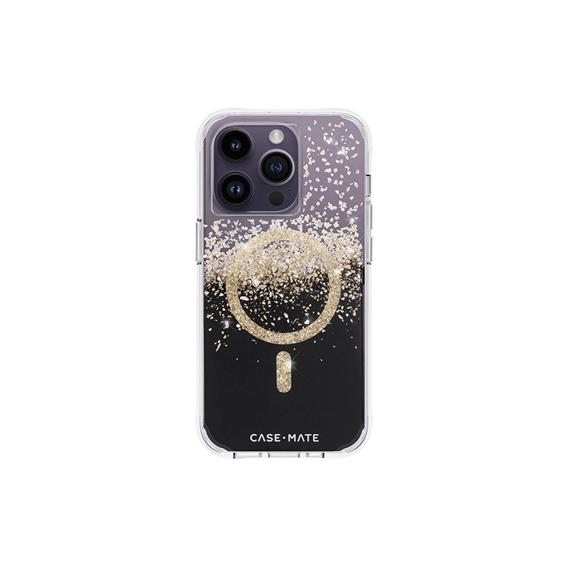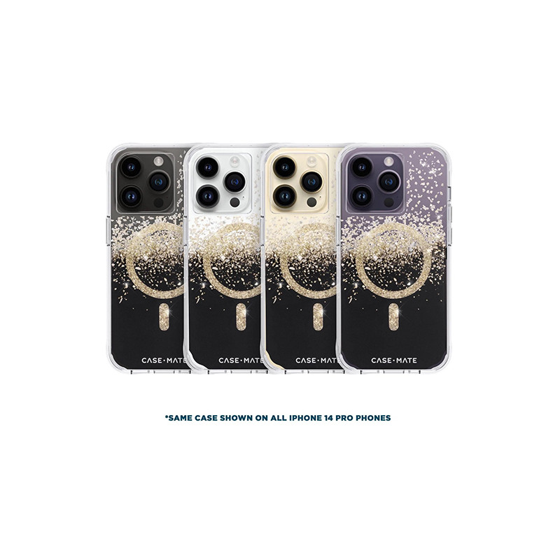 Classe, fabuleux et compatible MagSafe ! Karat Onyx pour l'iPhone 14 Pro comprend des aimants intégrés qui vous permettent d'accrocher simplement votre chargeur et vos accessoires MagSafe pour une expérience de charge sans fil des plus rapides. Les paillettes tombent en cascade sur l'étui dans une teinte onyx profonde, vous apportant l'élégance avec un soupçon de brillance.