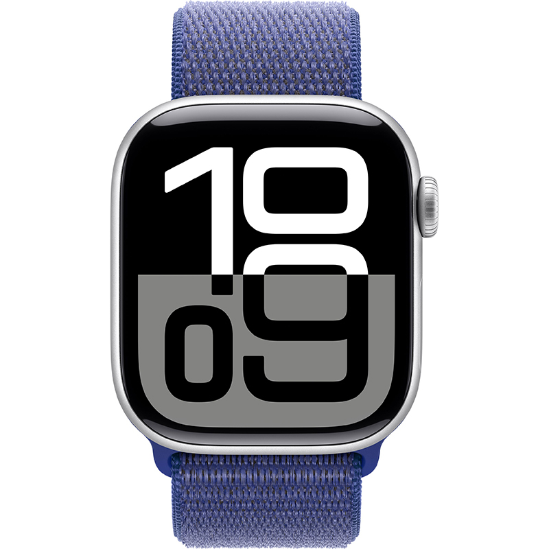 Apple Watch Series 10 GPS, Boîtier en aluminium argent de 42 mm, Boucle Sport outremer