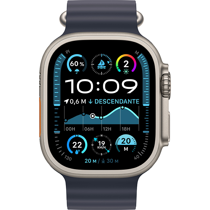 • Boîtier en titane de 49 mm résistant à la corrosion. Digital Crown très maniable et bouton Action personnalisable pour un contrôle instantané de toute une variété de fonctions. Résistance à l’eau jusqu’à 100 m5.