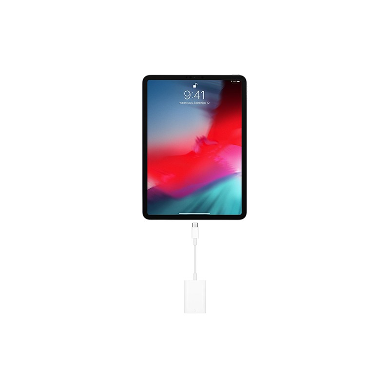L’Adaptateur USB‑C vers lecteur de carte SD transfère les photos et vidéos haute résolution à des vitesses UHS‑II sur votre Mac, iPad Pro 11 pouces ou iPad Pro 12,9 pouces (3e génération). Conçu de façon à ne pas entraver les autres ports, il fonctionne avec les cartes SD UHS‑II et est rétrocompatible avec d’autres adaptateurs et cartes SD.