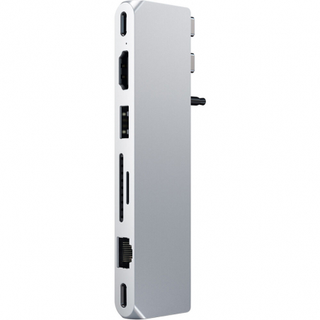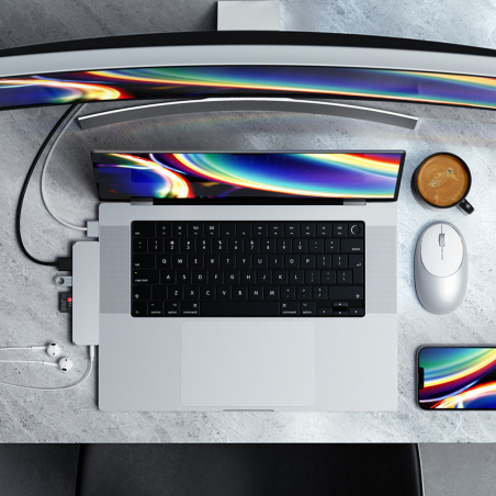 Le Satechi Pro Hub Max est le compagnon idéal pour votre MacBook Pro 2023. Doté d'un port PD USB-C entièrement fonctionnel, d'une sortie HDMI 4K, de Gigabit Ethernet, de données USB-C, de données USB-A, de lecteurs de cartes micro/SD et d'un port jack audio, le hub offre une pléthore de ports pour que vous puissiez travailler au mieux. Avec son double connecteur USB-C et sa finition moderne en aluminium, le Pro Hub Max se fixe en toute sécurité à votre Mac pour une installation propre et élégante.