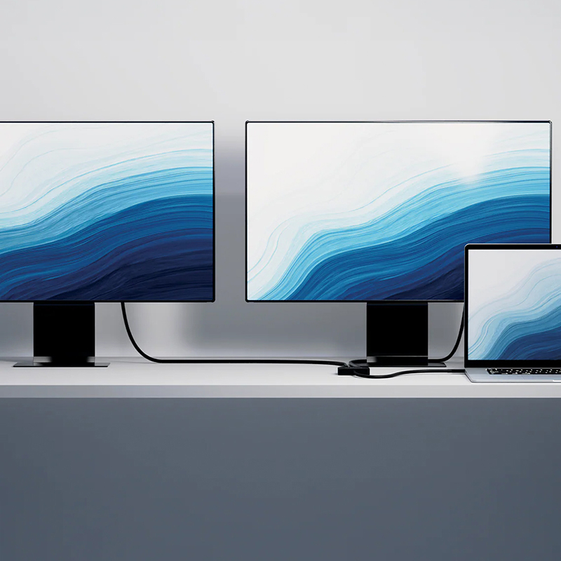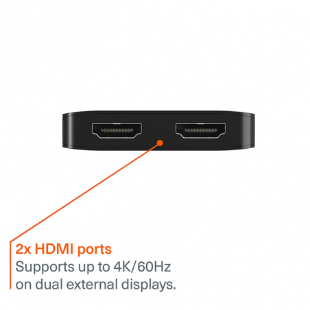 Élargissez votre espace de travail visuel grâce à deux ports HDMI prenant en charge une résolution maximale de 4K/60 Hz sur chaque écran externe. Prend en charge le mode Multi-Stream Transport (MST), permettant à chaque écran connecté d'afficher un contenu unique. Profitez d'une clarté exceptionnelle et d'images éclatantes sur plusieurs écrans, chacun fonctionnant comme un bureau indépendant pour une productivité accrue.