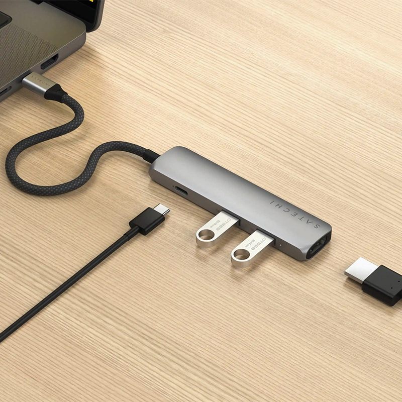 Ajoutez une pléthore de connexions à votre configuration à l'aide d'un seul câble avec l'adaptateur multiport mince 4-en-1 Satechi 4K. Notre adaptateur amélioré est doté d'un HDMI 4K (60 Hz), d'une charge USB-C PD de 100 W et de deux ports USB-A 3.2 Gen 2, combinant de manière transparente quatre ports en un seul appareil compact. Son design surélevé est doté d'un boîtier en aluminium élégant avec un câble tressé et un col renforcé pour une durabilité optimale.
