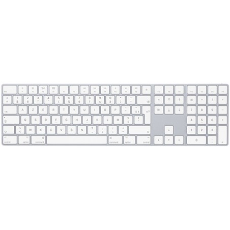 Le Magic Keyboard avec pavé numérique est un clavier étendu qui offre des commandes de navigation pour un défilement rapide et des touches fléchées de taille standard pour les jeux. Son mécanisme à ciseaux assure une meilleure stabilité des touches, tandis que son profil abaissé et la course de touche optimisée offrent confort d’utilisation et précision de frappe. Le pavé numérique est idéal pour les feuilles de calcul et les applications financières. Et comme la batterie intégrée offre une autonomie longue durée, votre clavier est opérationnel pendant au moins un mois entre deux charges.