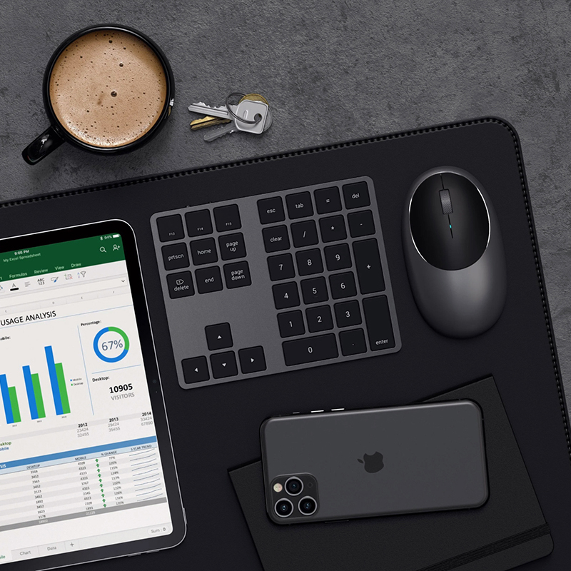 Développez votre clavier avec l'extension de clavier Bluetooth Satechi. Doté d'un pavé numérique complet, de flèches de navigation et de touches de raccourci MacOS pratiques, l'extension de clavier Bluetooth restaure les fonctionnalités d'un clavier de bureau sur votre tablette ou votre ordinateur portable. Avec son design mince et élégant, le clavier complète votre configuration moderne et facilite la saisie de données - que vous soyez au bureau ou en déplacement.
