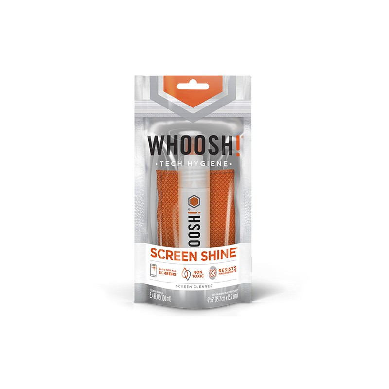 Éliminez les empreintes et les microbes indésirables avec le nettoyant d’écran Screen Shine de WHOOSH! Ce nettoyant est non toxique à 100 % et est garanti pour être sécuritaire pour tous les écrans. Utilisez-le pour nettoyer les écrans, les afficheurs numériques, les téléviseurs, les terminaux de point de vente et bien d’autres appareils en magasin!