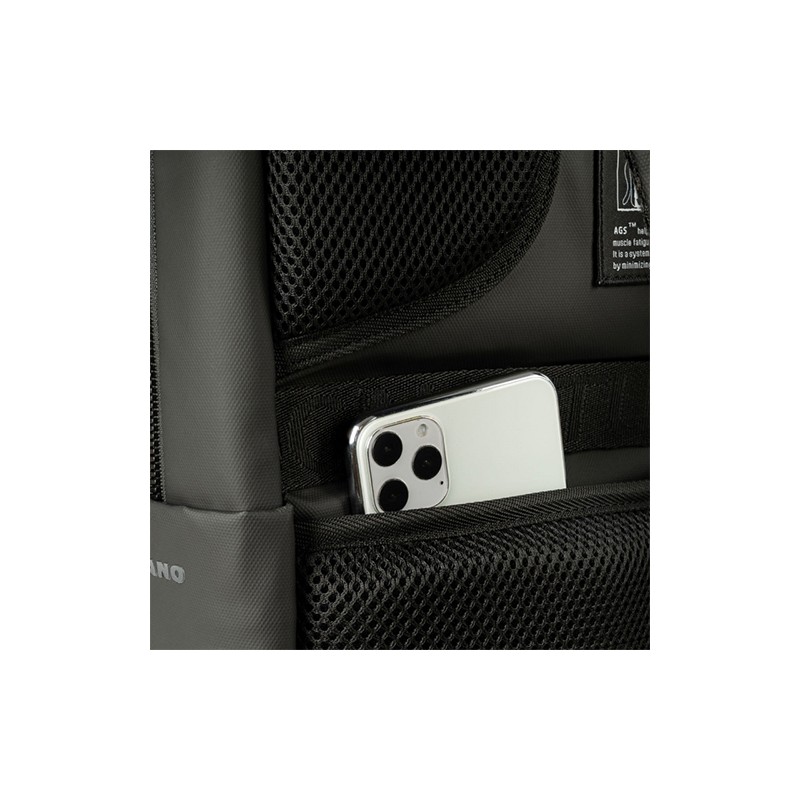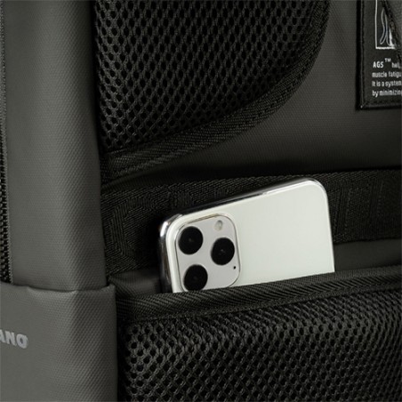 Sac à dos design contemporain pour ordinateurs portables 15,6" et MacBooks 16". Fabriqué en nylon 600D, un tissu de haute densité, le sac à dos Martem est très bien organisé, à l'intérieur comme à l'extérieur. Le compartiment principal, très spacieux, est équipé de deux poches rembourrées pour les ordinateurs portables et les tablettes, conçues pour assurer une bonne protection. La face avant est multi-tâches, offrant des espaces de différentes tailles avec des fermetures à glissière de qualité supérieure. Deux poches latérales verticales offrent l'endroit idéal pour ranger une bouteille d'eau et un parapluie. L'ergonomie du dos est renforcée par des éléments en filet rembourrés, des bretelles réglables, une poche de sécurité et une sangle pour trolley. Les cordons sont ornés d'un motif ton sur ton sur tout le corps.