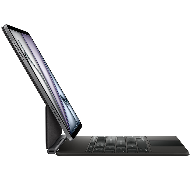 Le Magic Keyboard complète à merveille votre iPad Air. Il offre un confort de frappe exceptionnel ainsi qu’un trackpad pour effectuer des tâches de précision, dans un design portable et élégant. Ce clavier inclut une rangée de 14 touches de fonction, un connecteur USB‑C pour la recharge passthrough et une protection pour l’avant et l’arrière de votre iPad. Son design suspendu de type cantilever se règle facilement pour offrir différents angles de vision et son vaste trackpad en verre ouvre de nouvelles perspectives dans iPadOS.