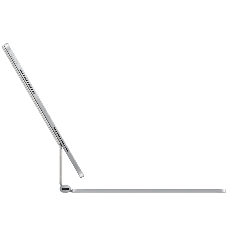 Le Magic Keyboard pour iPad Pro offre un exceptionnel confort de frappe et d’utilisation du trackpad dans un nouveau design élégant et léger, avec repose‑poignet en aluminium. Le clavier inclut une rangée de 14 touches de fonction pour profiter d’un accès pratique à certains réglages comme la luminosité de l’écran et le volume, et un connecteur USB‑C pour la recharge passthrough. Son design suspendu de type cantilever se règle facilement pour offrir différents angles de vision.