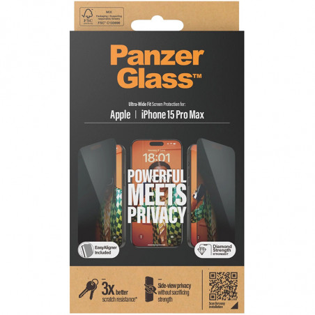 Messages privés. Coordonnées bancaires. Les codes pin. Avec ce protecteur d'écran de PanzerGlass™, vos secrets sont à l'abri des regards indiscrets des personnes assises à côté de vous dans le train, dans le bus ou au bureau. Le filtre de confidentialité spécialement conçu rend le contenu de votre écran pratiquement invisible pour tout le monde, sauf vous.