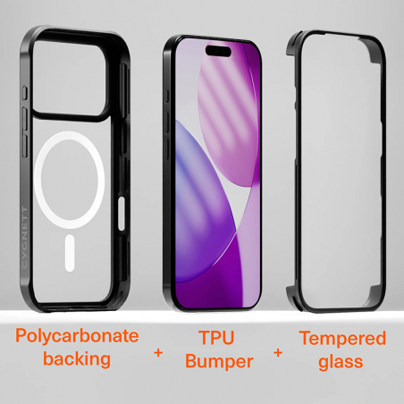 C’est comme avoir 3 produits premium en 1 ! Coque ultra-résistante + protecteur d’écran professionnel + compatibilité MagSafe parfaite. Son cadre TPU PuriMate™ absorbe les chocs comme aucun autre, tandis que l’arrière en PC transparent avec technologie anti-jaunissement garde la beauté de votre iPhone visible pendant des années.