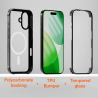 C’est comme avoir 3 produits premium en 1 ! Coque ultra-résistante + protecteur d’écran professionnel + compatibilité MagSafe parfaite. Son cadre TPU PuriMate™ absorbe les chocs comme aucun autre, tandis que l’arrière en PC transparent avec technologie anti-jaunissement garde la beauté de votre iPhone visible pendant des années.