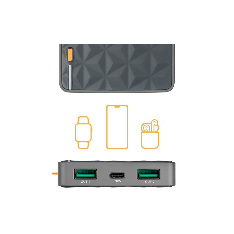 Cette batterie externe est dotée de toutes les dernières technologies et de nouvelles fonctionnalités pour apporter des vitesses de charge de nouvelle génération à votre smartphone. Dotée de 2 sorties USB et d’un port USB-C 20 W extra puissant, vous pourrez charger votre téléphone plus rapidement que jamais !