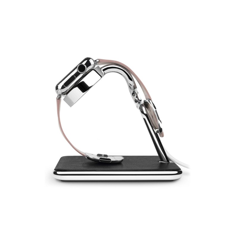 Forté pour Apple Watch est un stand de luxe et un dock de chargement soigneusement conçu pour s'adapter à la beauté intemporelle d'Apple Watch. Forté affiche élégamment votre Apple Watch au sommet du support en chrome brillant tout en la protégeant avec une base douce en cuir. Forté fonctionne parfaitement avec votre câble de charge magnétique Apple Watch. L'angle de 40 degrés du bras de Forté permet une visualisation facile.