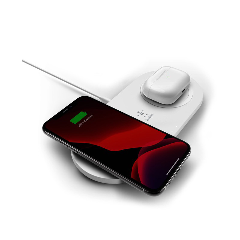 N’attendez plus qu’un appareil soit chargé pour recharger le vôtre. Tirez parti de tous les avantages de la technologie de recharge sans fil leader du marché pour recharger deux appareils en simultané. La double station de recharge à induction BOOST↑CHARGE vous permet de libérer de l’espace sur votre comptoir ou bureau. Compatible iOS et Android, elle constitue la solution parfaite pour les collègues de travail ou familles qui utilisent plusieurs appareils différents. Le revêtement antidérapant maintient vos appareils en place pendant la recharge. Le témoin lumineux LED permet de vous indiquer lorsqu’ils sont posés correctement sur la station.
