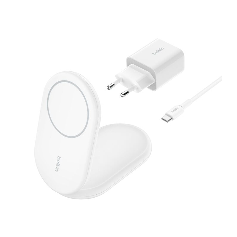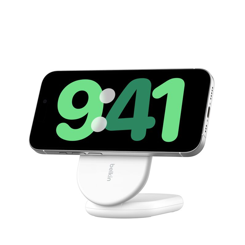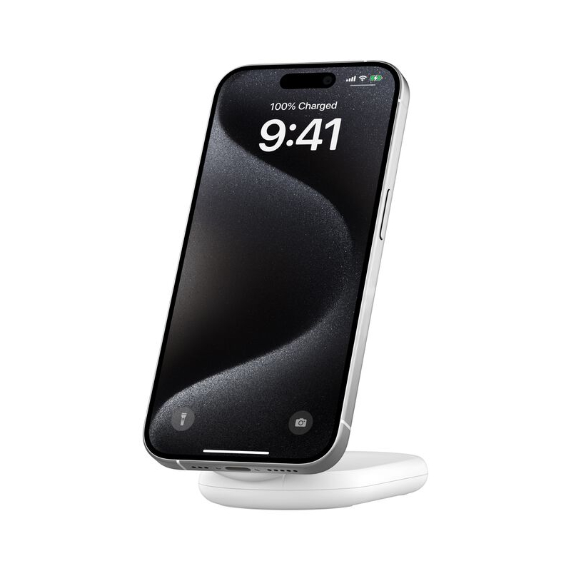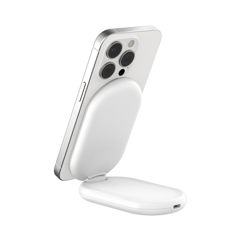 Ce socle de recharge pliable pratique vous offre 15 W de recharge sans fil rapide pour votre iPhone (versions 16 à 17) ou autre appareil compatible Qi2. Il vous permet de poser de façon aimantée votre smartphone, à la verticale ou à l'horizontale, et pour les utilisateurs d'iPhone, de profiter de la fonction StandBy (iOS 17).