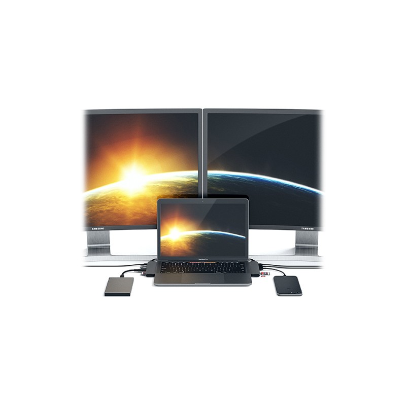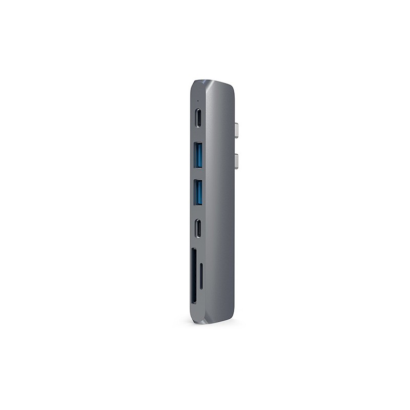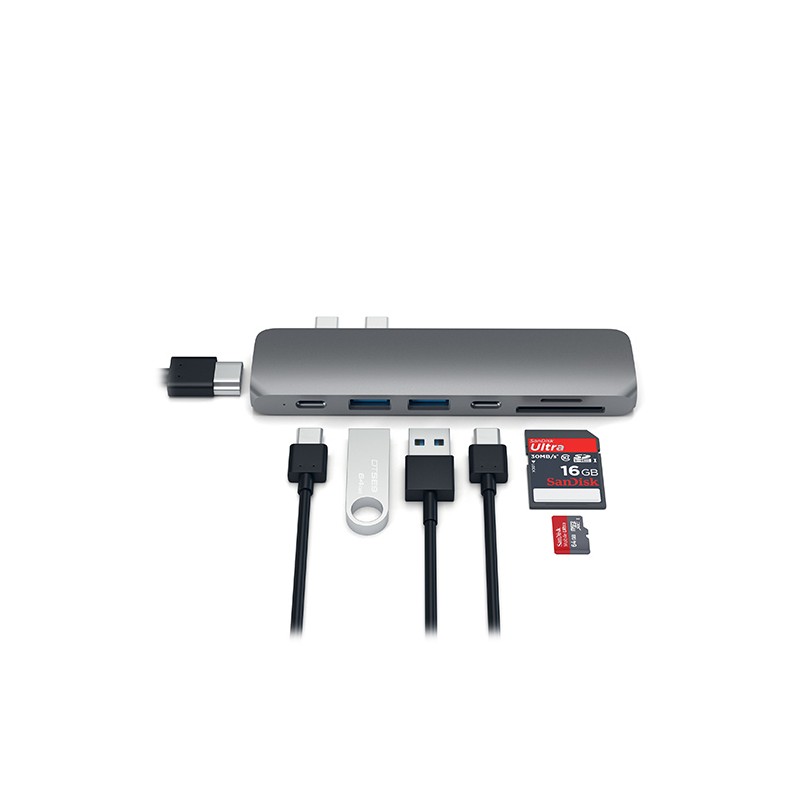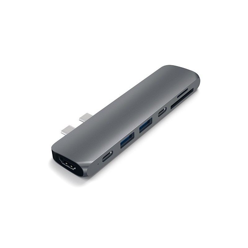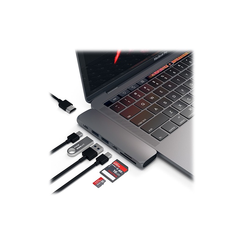 Conçu exclusivement pour les modèles MacBook Pro 13 ”et 15” 2016/2017/2018. Doté d’une alimentation USB-C Power Delivery (jusqu’à 87 W), d'un port USB-C, de 2 ports USB 3.0, d'un port HDMI ,d’un emplacement pour carte SD et micro SD, ce hub répondra à tous vos besoins en matière de transfert de données. Avec sa finition en aluminium brossé, le hub Type-C Pro complète vos accessoires Apple et complète la configuration de votre bureau. Simplement, branchez et admirez l'étendu des capacités de votre MacBook Pro.