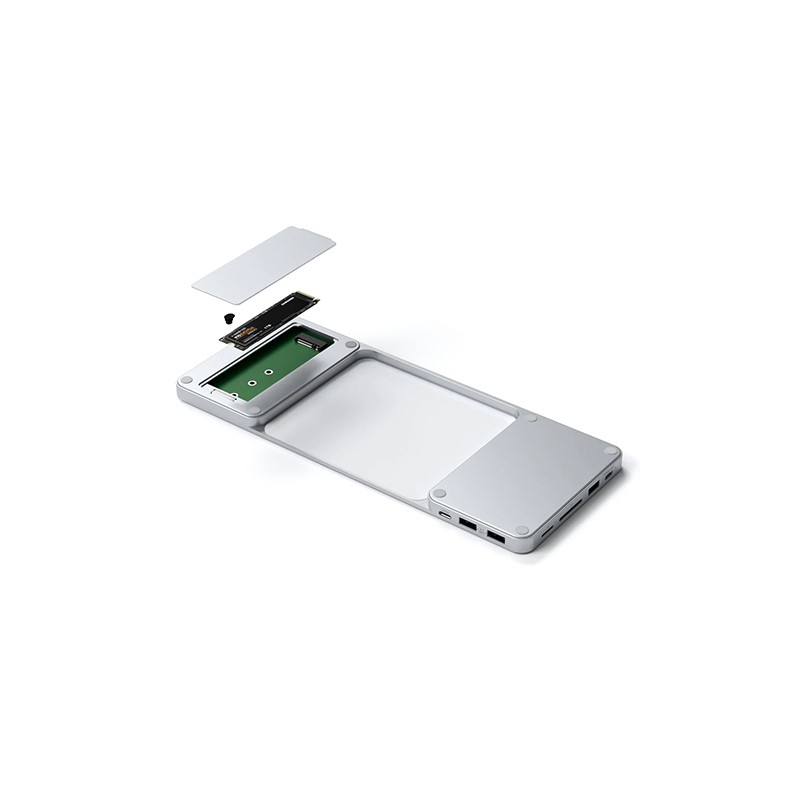 Conçue pour s'adapter exclusivement à l'iMac 2021 (24 pouces), la station d'accueil USB-C Slim Dock de Satechi pour iMac 24 pouces offre un boîtier intégré pour ajouter un stockage externe à votre iMac et un accès pratique à tous vos ports et périphériques les plus appréciés. Dotée d'un port de données USB-C 10 Gbps, d'un port de données USB-A 10 Gbps, de 2 ports USB-A 2.0, de fentes pour lecteur de cartes micro/SD et d'un boîtier NVMe Sata, la station d'accueil USB-C Slim Dock améliore les fonctionnalités de votre iMac tout en conservant une esthétique élégante, le tout avec un design plug and play.