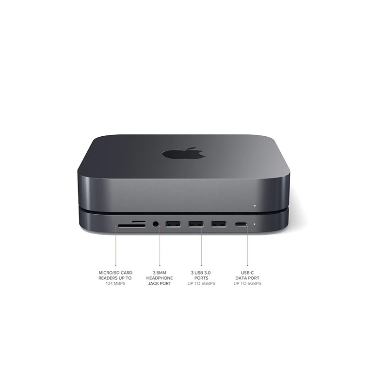 Premier en son genre, le support et hub Type-C en aluminium élève et transforme votre Mac Mini en une station de travail puissante et étonnamment compacte. Équipé d'un port de données USB-C, de trois ports de données USB-A, de lecteurs de cartes micro/SD et d'un port de prise casque de 3,5 mm, pour offrir un accès pratique à vos périphériques. Le Mac Mini n'est pas inclus.