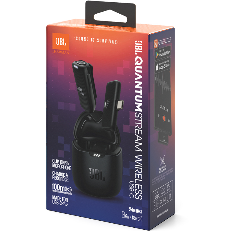 Enregistrez, diffusez et créez du contenu où que vous soyez. Le microphone JBL Quantum Stream Wireless avec dongle USB-C pour les appareils Android et les appareils Apple les plus récents est un microphone polyvalent et flexible, avec un modèle omnidirectionnel qui capture un son de haute qualité dans toutes les directions. La conception légère qui se clipse est pratique et confortable. Il offre toujours des enregistrements clairs grâce à la réduction de bruit ambiant réglable et à la bonnette en fourrure en option pour les conditions venteuses. Le gain de micro réglable facilite l’enregistrement dans n’importe quel environnement, tandis qu’un bouton de coupure du son avec voyant LED vous permet de ne jamais oublier d’activer le micro. De plus, il est compatible avec l’application JBL Headphones pour que vous puissiez personnaliser entièrement votre son. Laissez votre âme d’artiste s’exprimer où que vous alliez avec le microphone JBL Quantum Stream Wireless.