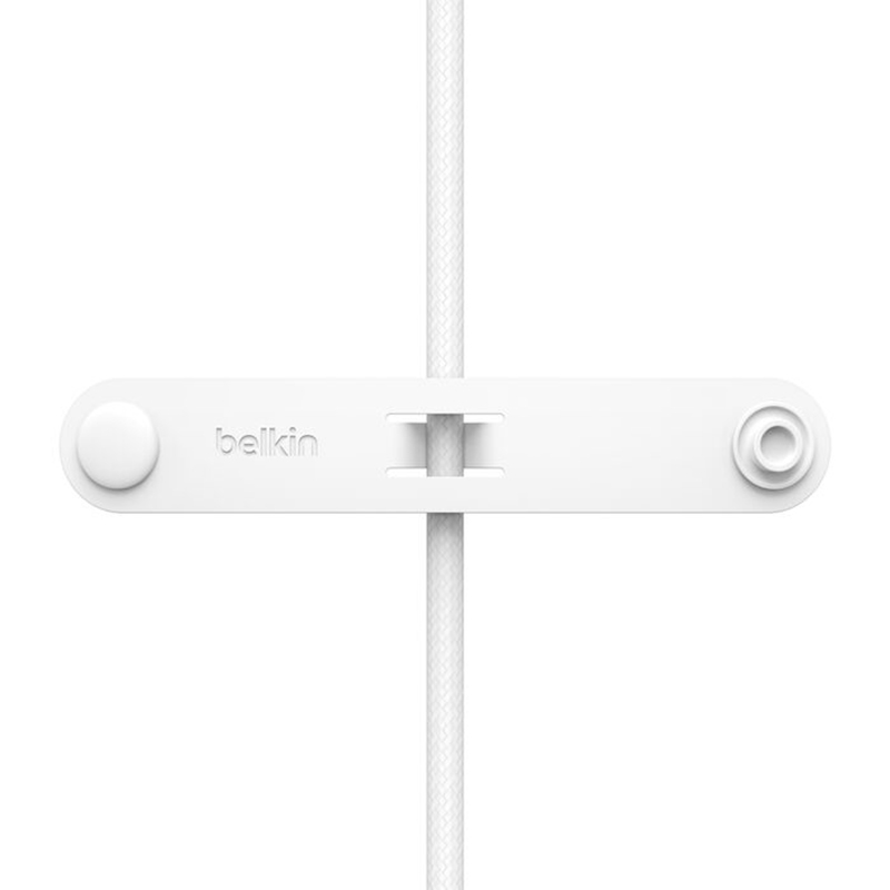 Câble de recharge 2-en-1 avec connecteurs USB-C et Lightning (1,5 m) et une sangle de fermeture en silicone.