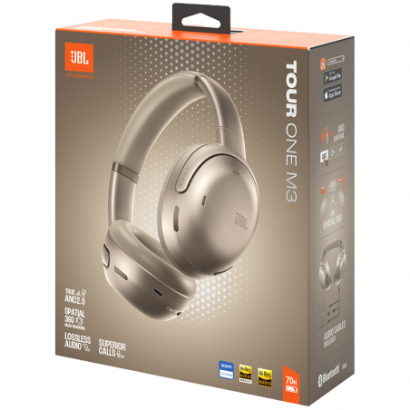Soyez prêt pour le JBL Tour One M3, notre casque le plus puissant et le plus riche en fonctionnalités jamais conçu. Abandonnez-vous au son sans perte du DAC 192kHz 24bit intégré. Faites disparaître les kilomètres avec de la musique et des films depuis le système de divertissement en vol à l'aide du câble 3,5 mm inclus (un câble USB-C est également inclus). Ou passez au sans fil avec un son haute résolution Hi-Res époustouflant via Bluetooth®. Le son JBL Spatial 360 avec suivi intégré de la tête rend les films et les jeux mobiles encore plus immersifs. La fonction de Véritable Réduction de Bruit Adaptative 2.0 élimine le bruit ambiant gênant en temps réel, afin que vous puissiez vous concentrer sur votre travail ou votre playlist préférée. Personnalisez et contrôlez votre son grâce à l’application JBL Headphones.