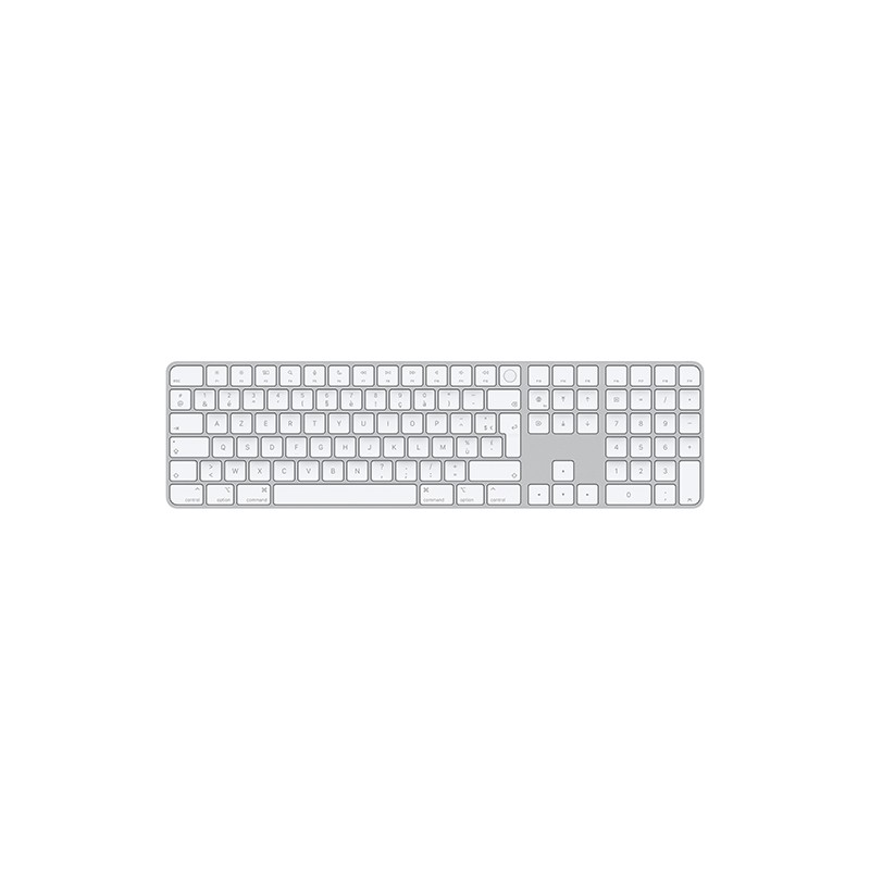 Le Magic Keyboard avec Touch ID et pavé numérique vous garantit une frappe d’un confort et d’une précision remarquables. Son format étendu intègre des commandes de navigation pour parcourir rapidement les documents, ainsi que des touches fléchées de taille standard, très pratiques pour les jeux vidéo. Quant au pavé numérique, il est idéal pour les feuilles de calcul et les applications financières. Il est sans fil et propose une batterie rechargeable qui alimentera votre clavier pendant environ un mois ou plus entre deux charges. Le Magic Keyboard s’associe automatiquement à votre Mac, pour que vous puissiez vous mettre au travail sans attendre. Et il est livré avec un câble tissé USB‑C vers Lightning qui vous permet de le jumeler et de le recharger en le branchant sur un port USB‑C de votre Mac.