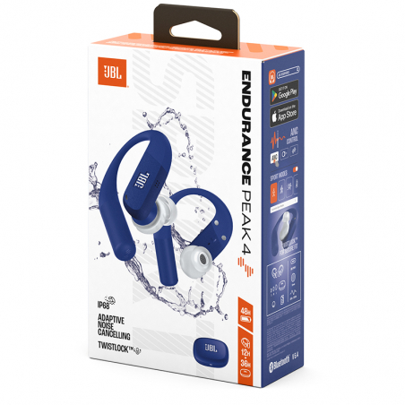 Faites de l’exercice plus intensément et plus longtemps. La flexibilité, le son puissant et le design robuste des écouteurs JBL Endurance Peak 4 s’adapteront à votre rythme. Le son Pure Bass de JBL avec son spatialisé amplifie votre entraînement et, quelle que soit l’intensité de vos mouvements, l’ajustement ergonomique du design TwistLock™ vous garantit position stable et confort durable. Et surtout, grâce à leur indice de protection IP68 offrant une résistance à l’eau et à la poussière, la météo ne sera jamais une excuse pour rester chez vous. Bloquez les distractions grâce à la Réduction de Bruit Adaptative ou restez à l’écoute du monde qui vous entoure grâce à la fonction Ambient Aware. Vous voulez courir malgré le vent ? Vos appels seront parfaitement clairs comme à la maison, grâce aux 3 micros sur chaque écouteur. Les écouteurs offrent jusqu’à 48 heures d’autonomie afin de vous donner la motivation musicale nécessaire pour courir un marathon chaque jour pendant une semaine, avant d’avoir besoin d’une recharge. L’application JBL Headphones vous permet de personnaliser votre son et les paramètres des écouteurs, selon vos envies. Partez où votre entraînement vous mène avec les écouteurs JBL Endurance Peak 4.