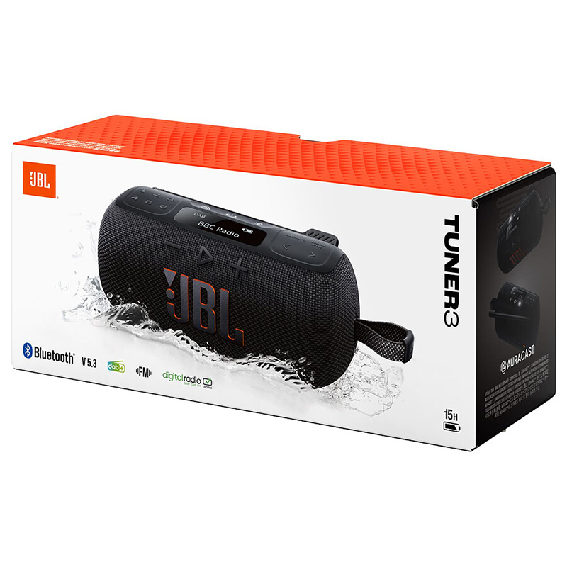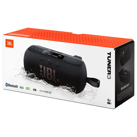 Une radio au son cristallin où que vous soyez. Laissez place au divertissement et offrez-vous une nouvelle expérience radio engageante. Notre radio portable et puissante JBL Tuner 3 nous permet de profiter pleinement de nos stations de radio DAB/DAB+/FM préférées et de la diffusion en Bluetooth, offrant le son JBL Pro clair et imposant, que ce soit en cuisine, au bord de la piscine, en camping ou partout où l’ambiance nous mène. Nous savons qu’elle va améliorer votre expérience d’écoute. Préparez-vous à monter le volume. Étant donné que nous avons augmenté la puissance du haut-parleur, la JBL Tuner 3 offre un son suffisamment puissant pour remplir n’importe quel espace d’un son immaculé et réaliste. C’est notre radio la plus puissante à ce jour. Préréglez vos six stations préférées pour les avoir toujours à portée de main. Nous aimons également parcourir les ondes hertziennes pour voir quelles surprises nous attendent sur le grand écran LCD dégagé. Dans tous les cas, vous avez jusqu’à 15 heures d’autonomie musicale avec la fonction Playtime Boost avant de devoir mettre l’appareil en charge. Emportez-la partout avec vous, à l’intérieur comme en extérieur, grâce à sa boucle robuste. Que vous écoutiez la radio pendant votre routine beauté dans la salle de bains ou sur une plage de sable blanc, sa conception étanche à l’eau et à la poussière peut faire face à presque toutes les conditions. Trouvez votre propre nouvelle station avec la JBL Tuner 3.