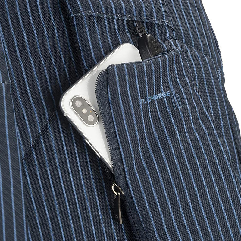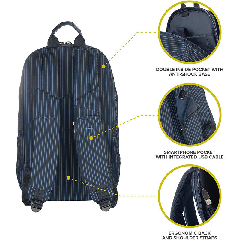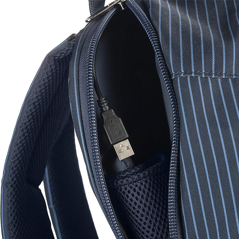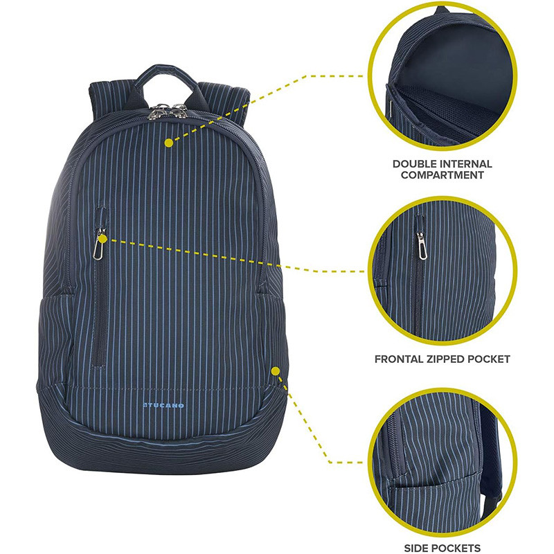 Sac à dos en tissu mélangé durable, pour un effet métropolitain. Le compartiment interne est doté d'un rembourrage supplémentaire pour transporter en toute sécurité les ordinateurs portables et les appareils de dernière génération. Le compartiment principal est facilement accessible grâce à une petite fermeture éclair latérale, un détail conçu pour répondre aux besoins de praticité typiques du consommateur moderne. Dans le deuxième compartiment, il y a une cloison pratique où vous pouvez ranger des livres, des documents et divers accessoires. À l'extérieur, il y a une poche à accès rapide avec une fermeture éclair verticale, ainsi que deux poches latérales pour les petits objets. Les sangles de dos et d'épaule sont rembourrées pour un confort maximal lors du transport.