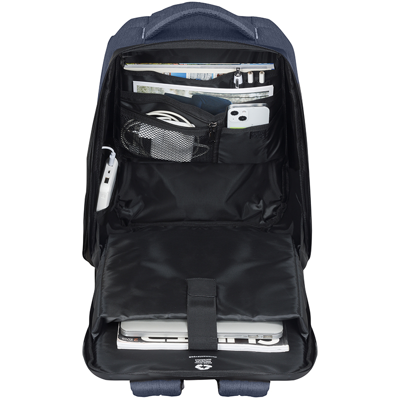 Christiansborg est un sac à dos spacieux et éco-conçu, fabriqué à partir de plastique recyclé. Le sac est conçu pour transporter tous vos besoins quotidiens et même plus, car sa forme carrée crée un intérieur de grande capacité. Gardez votre ordinateur portable en sécurité dans le compartiment rembourré et organisez facilement votre téléphone, vos stylos et vos cahiers grâce aux multiples poches internes du sac.