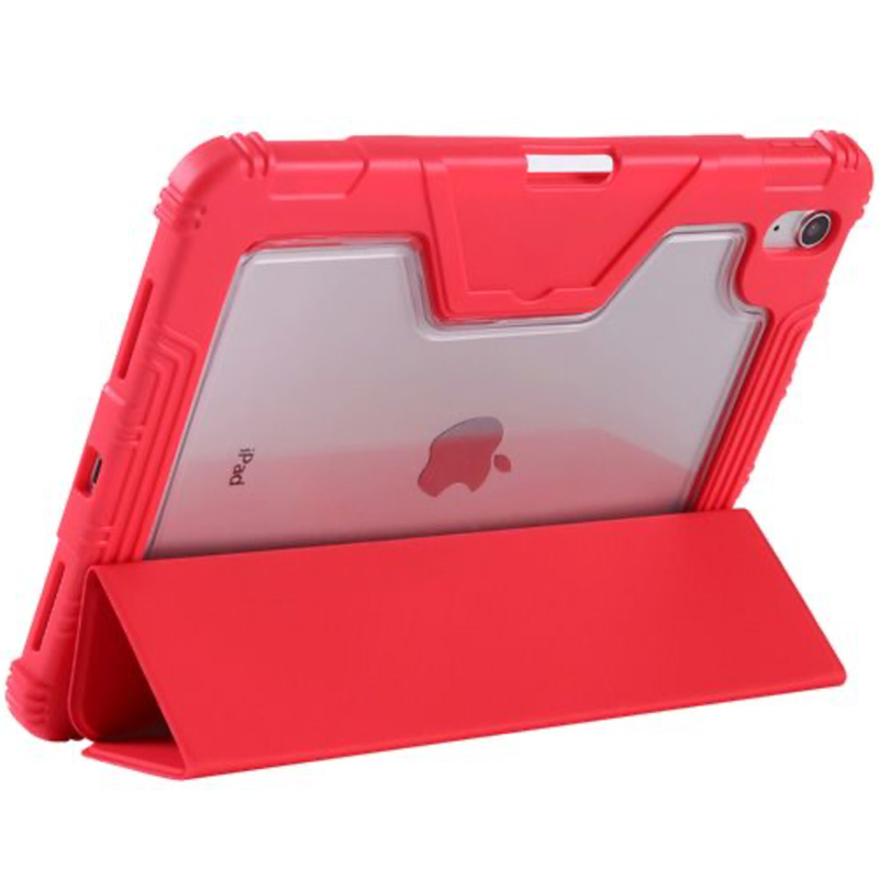 Ce folio aux angles renforcés laisse apparaitre l’arrière de votre iPad tout en offrant une protection optimale en répondant à la certification MIL-STD-810G. Le rabat 3 volets permet deux positions de supports : l’une pour regarder des vidéos, l’autres pour écrire. Grâce à son magnétisme, il dispose également de la fonction de veille automatique ON/OFF.