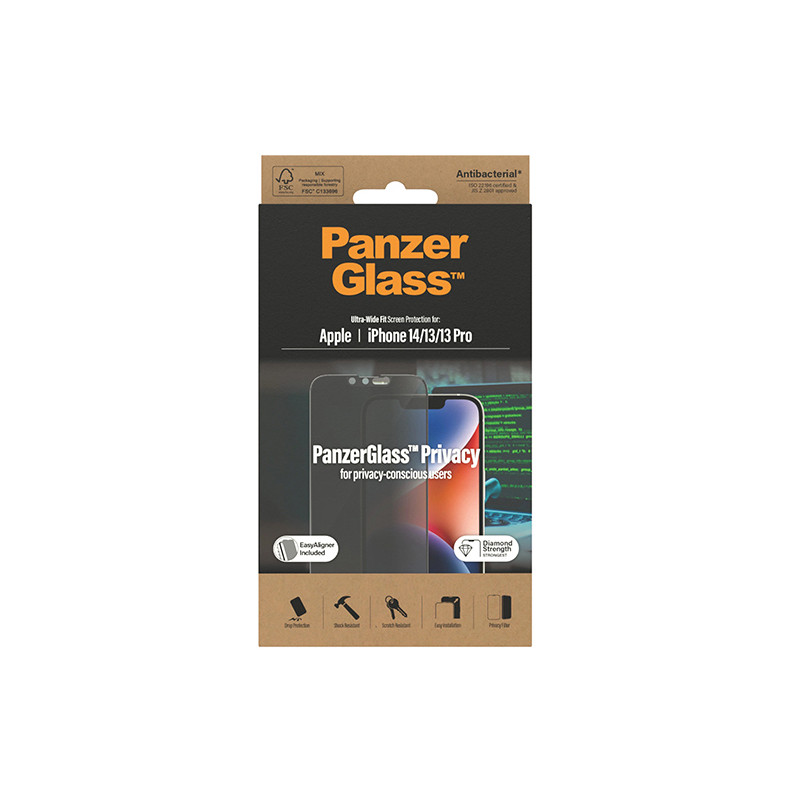 Messages privés. Coordonnées bancaires. Les codes pin. Avec ce protecteur d'écran de PanzerGlass™, vos secrets sont à l'abri des regards indiscrets des personnes assises à côté de vous dans le train, dans le bus ou au bureau. Le filtre de confidentialité spécialement conçu rend le contenu de votre écran pratiquement invisible pour tout le monde, sauf vous.