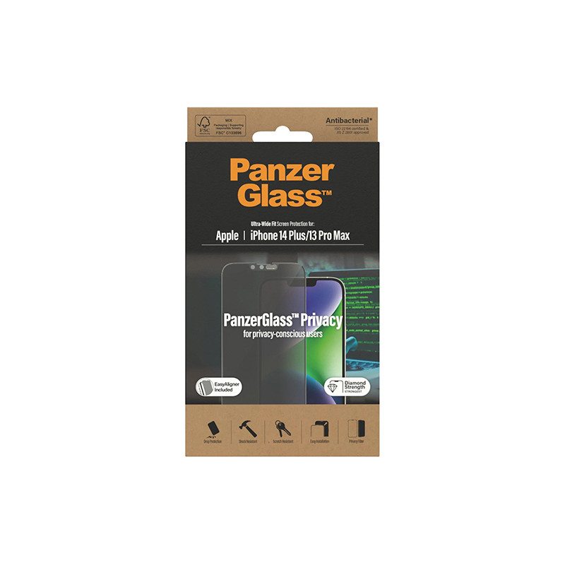 Messages privés. Coordonnées bancaires. Les codes pin. Avec ce protecteur d'écran de PanzerGlass™, vos secrets sont à l'abri des regards indiscrets des personnes assises à côté de vous dans le train, dans le bus ou au bureau. Le filtre de confidentialité spécialement conçu rend le contenu de votre écran pratiquement invisible pour tout le monde, sauf vous.