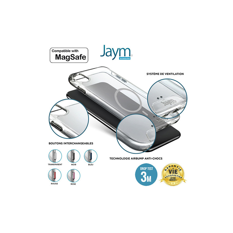 Découvrez la nouvelle coque souple renforcée bi-matière compatible MagSafe de Jaym qui offre un niveau de protection incomparable contre les chutes !