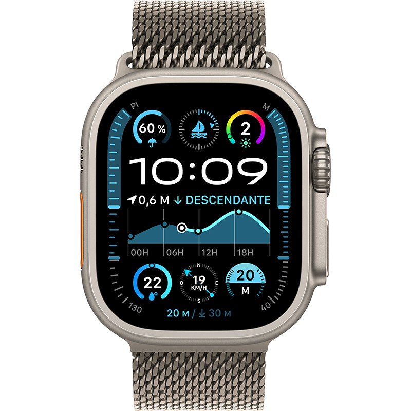 • Boîtier en titane de 49 mm résistant à la corrosion. Digital Crown très maniable et bouton Action personnalisable pour un contrôle instantané de toute une variété de fonctions. Résistance à l’eau jusqu’à 100 m5.